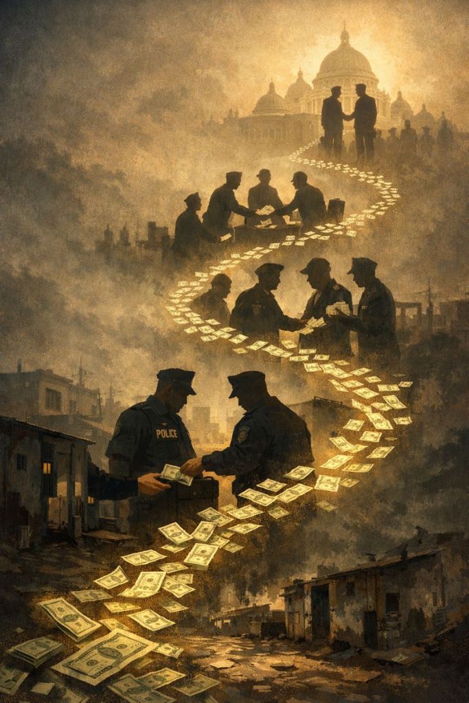 Money moves up the chain of command—to supervisors, commanders, and regional leadership. By the time it reaches higher political levels, it’s far removed from its original source. That distance is intentional.